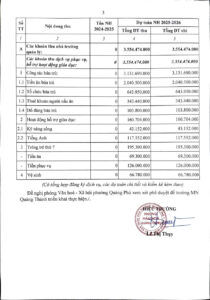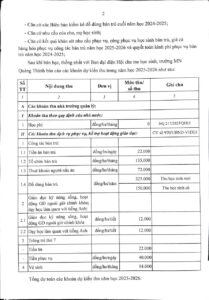 Công khai các khoản thu thõa thuận của phụ huynh năm học 2025 – 2026